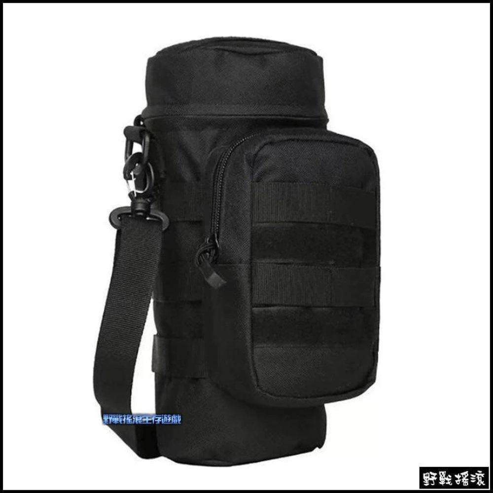 野戰搖滾 高品質Molle戰術模組化水壺袋、水壺包(黑色附背帶登山戶外水瓶袋水杯袋水袋包側背水壺包腰掛)