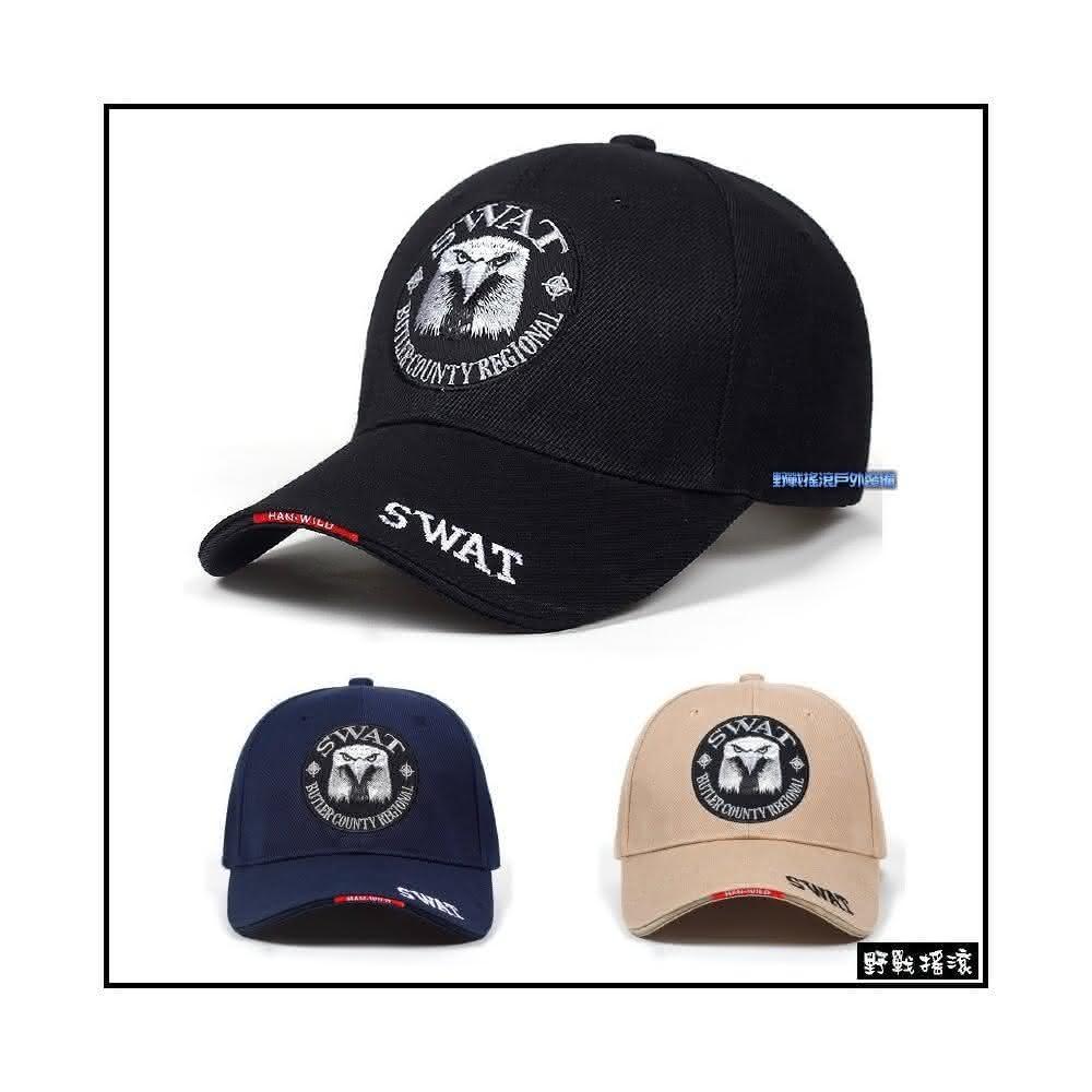 野戰搖滾 SWAT 老鷹款戰術棒球帽(黑色沙色海軍藍色迷彩帽POLICE軍帽特警勤務帽小帽特勤保全)