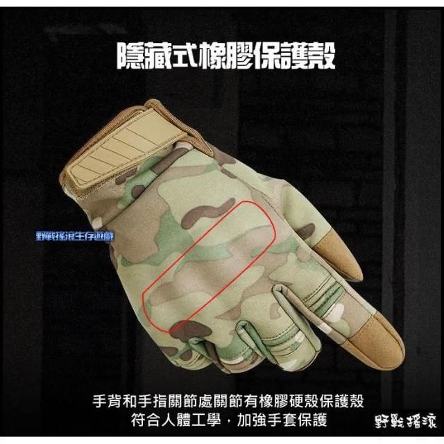 野戰搖滾 隱藏式硬殼戰術手套(多地形迷彩 黑色 生存遊戲 可滑手機防水手套射擊手套騎車手套登山重機搏擊格鬥)