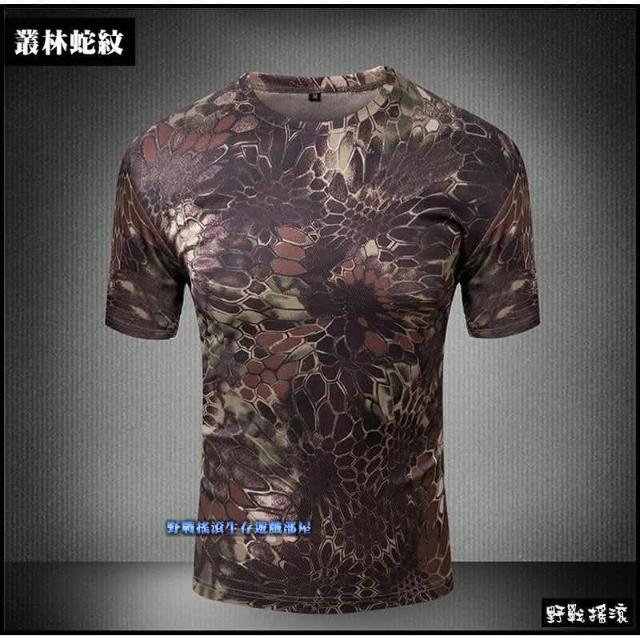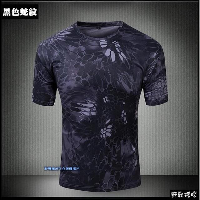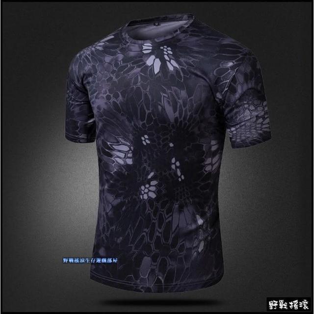 野戰搖滾 超酷! 迷彩戰術速乾T恤(黑色蟒蛇紋迷彩)短袖T恤黑蟒迷彩服排汗戰術T恤響尾蛇