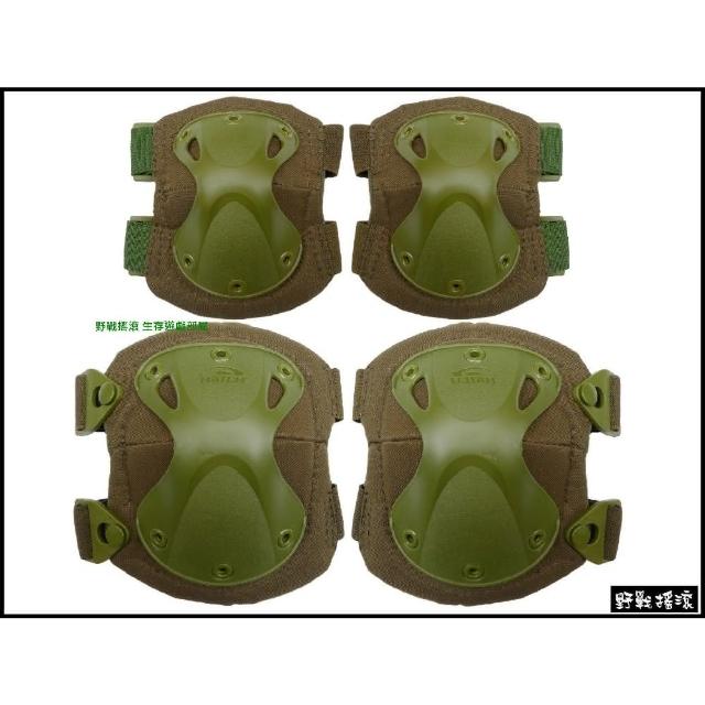 野戰搖滾 變形金剛戰術生存遊戲護具組-護膝&護肘(黑色、軍綠色、迷彩)騎車防護戶外運動護手保全特勤特警