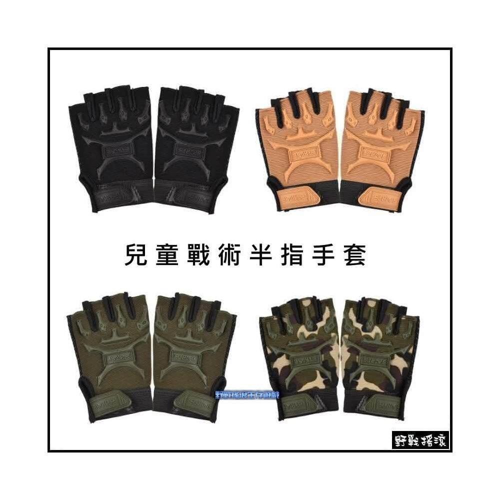 野戰搖滾 兒童戰術半指手套(黑色、軍綠色、沙色、叢林迷彩)小孩手套童裝戰術手套射擊手套迷彩手套
