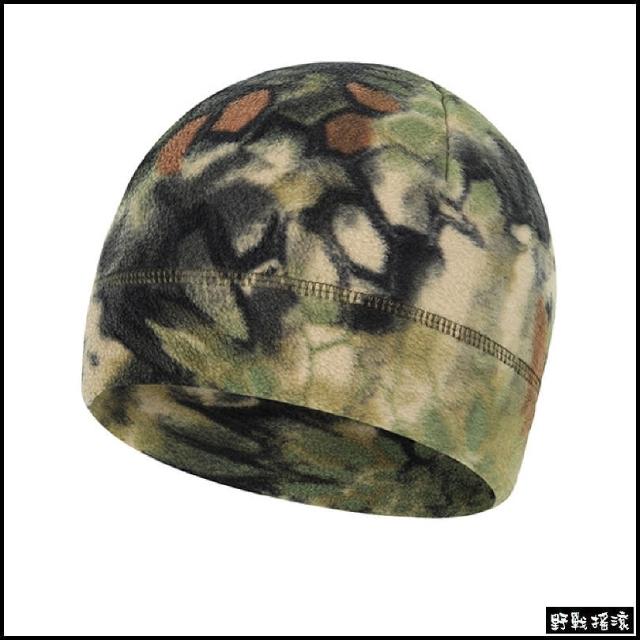 野戰搖滾 冬季保暖迷彩抓絨帽、毛帽(黑色多地形迷彩)暗夜迷彩面罩頭巾蛇紋頭套戰術抓絨帽保暖帽