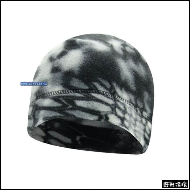 野戰搖滾 冬季保暖迷彩抓絨帽、毛帽(黑色多地形迷彩)暗夜迷彩面罩頭巾蛇紋頭套戰術抓絨帽保暖帽
