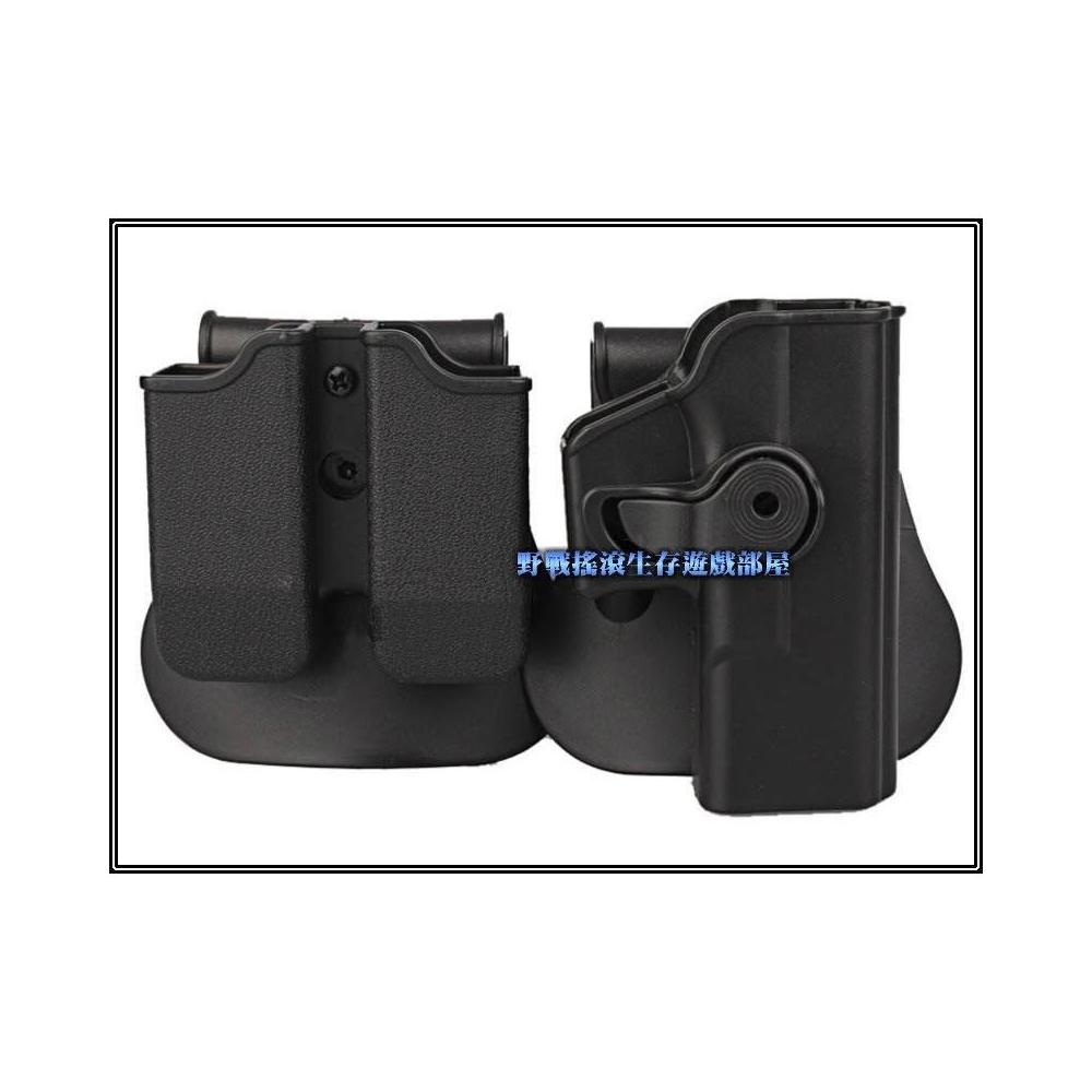 野戰搖滾 IMI 造型 旋轉式 快拔槍套 + 彈匣套- Glock 款式(黑色) CQC 腰掛手槍套 生存遊戲