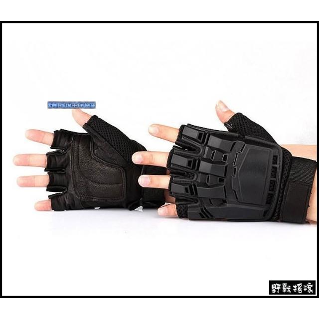 野戰搖滾 特警硬殼攻堅防彈半指手套 黑色 生存遊戲防彈手套射擊手套騎車手套格鬥手套勤務特警特勤保全重機