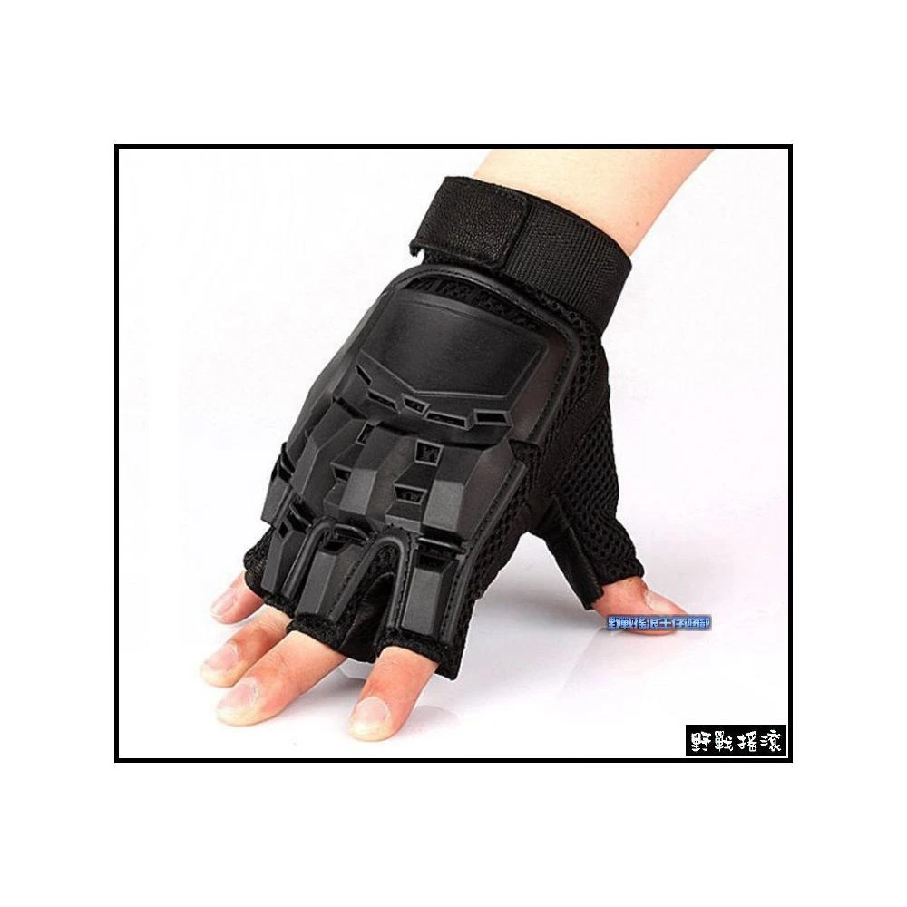 野戰搖滾 特警硬殼攻堅防彈半指手套 黑色 生存遊戲防彈手套射擊手套騎車手套格鬥手套勤務特警特勤保全重機