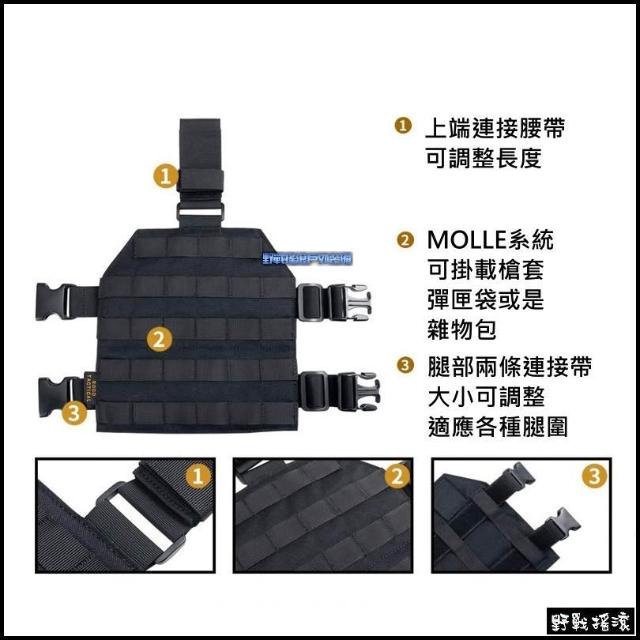 野戰搖滾 ROCO MOLLE 多功能戰術腿掛板 黑色、狼棕色 可腿掛槍套生存遊戲彈匣袋水壺袋雜物包無線電袋工具包腿板