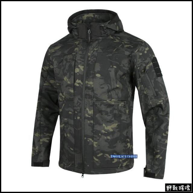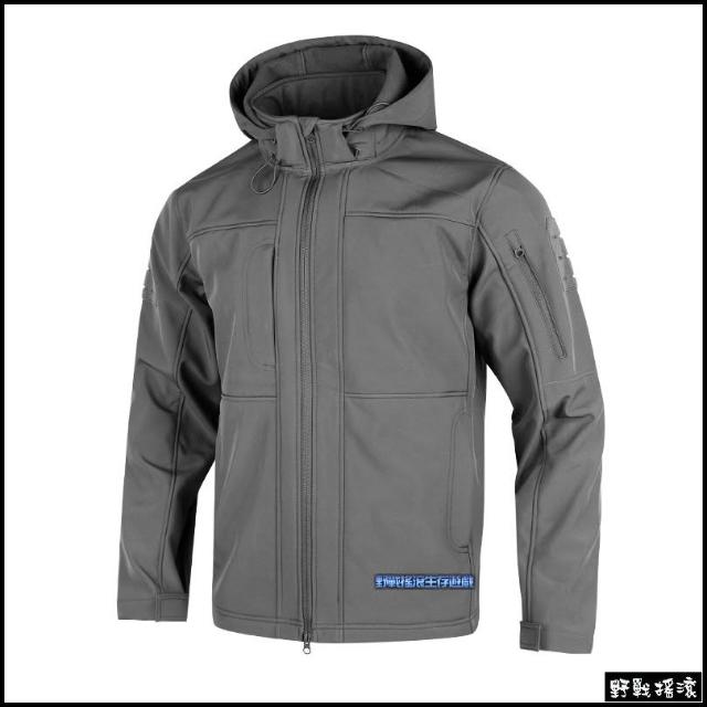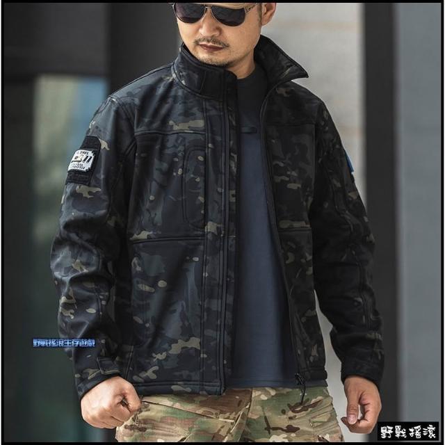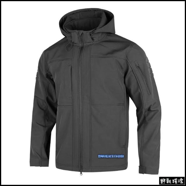 野戰搖滾 雷霆鯊魚皮軟殼外套、衝鋒衣 黑色 立領款鯊魚皮外套戰術風衣迷彩外套登山防寒保暖風衣勤務風衣夾克