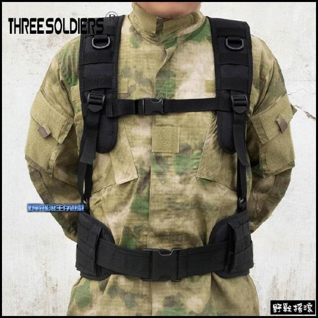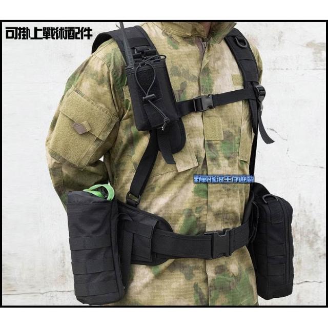 野戰搖滾 肩掛式背帶戰術腰封 黑色 戰術背心腰靠MOLLE戰術腰帶勤務腰帶Y帶肩掛腰封生存遊戲