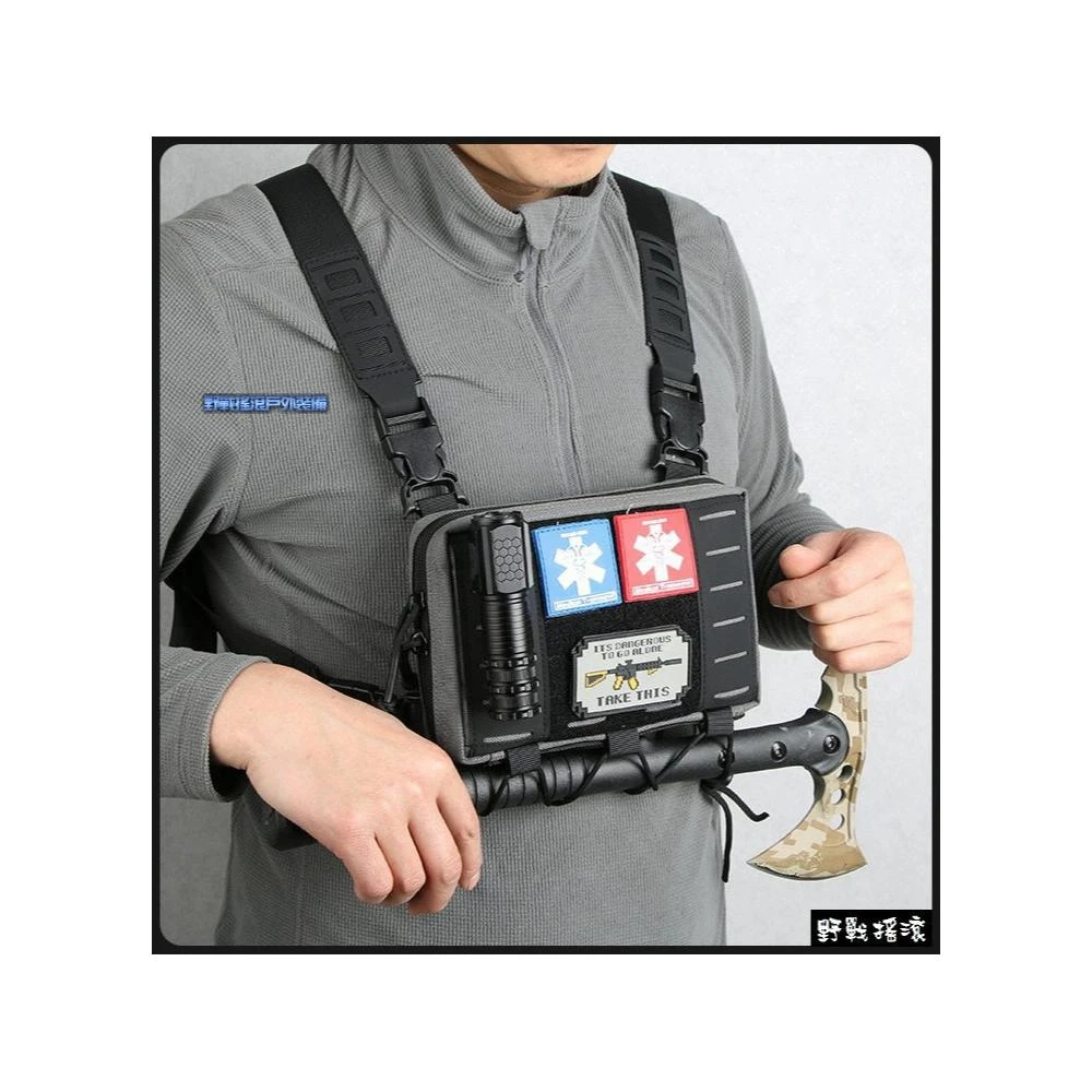 野戰搖滾 石虎多功能戰術胸前包 黑色、灰綠色、暗夜迷彩 胸包胸掛包側背包登山特警勤務背包特勤重機包肚兜包側背包戰術背心