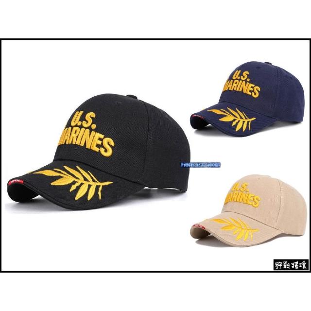 野戰搖滾-生存遊戲 U.S.MARINES 美國海軍陸戰隊棒球帽 黑色、海軍藍色、沙色 金色樹葉款可調戰術帽軍帽小帽
