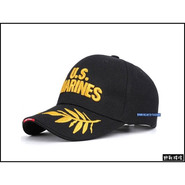野戰搖滾-生存遊戲 U.S.MARINES 美國海軍陸戰隊棒球帽 黑色、海軍藍色、沙色 金色樹葉款可調戰術帽軍帽小帽