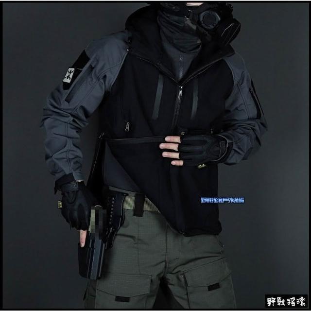野戰搖滾 追擊者鯊魚皮戰術軟殼外套 黑色 / 灰色 戰術上衣夾克戰術外套工作服迷彩服特警勤務服拼接外套特勤外套衝鋒衣