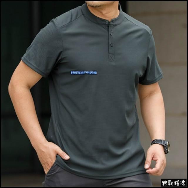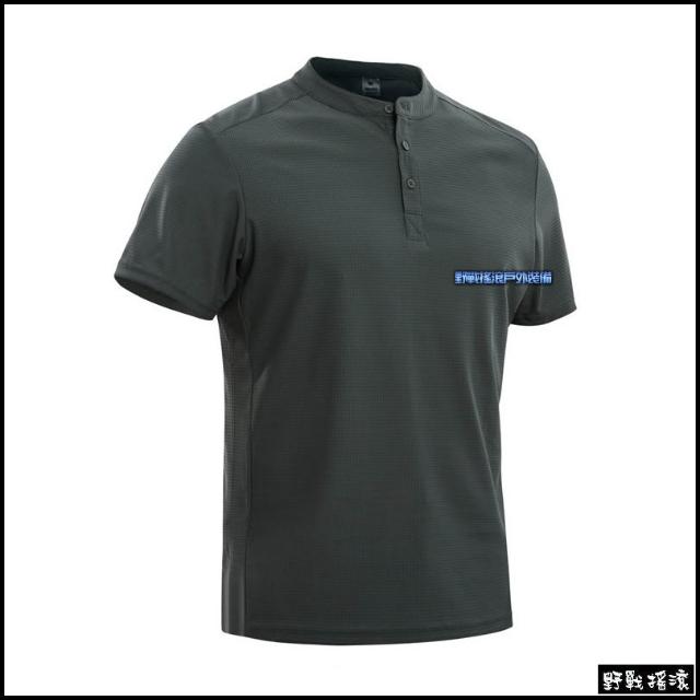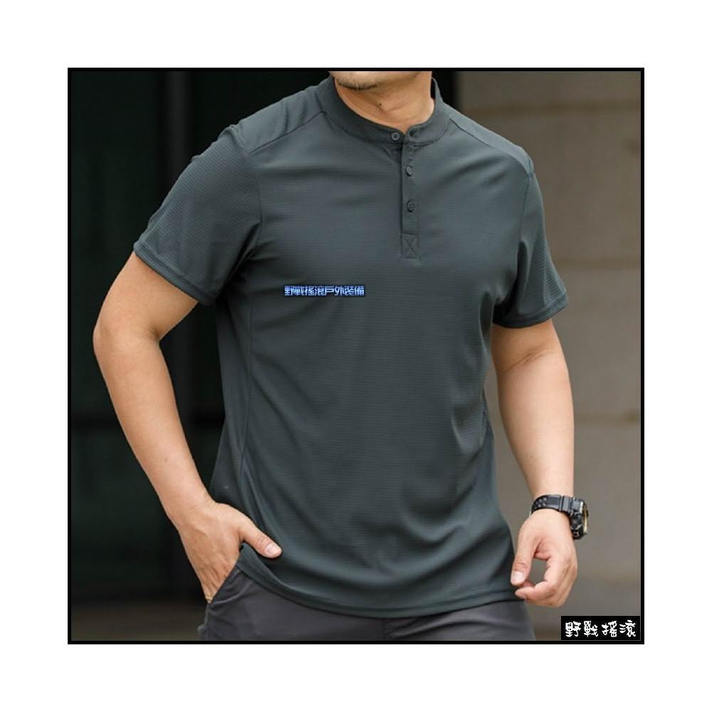 野戰搖滾 軍風亨利領高彈力短袖戰術T恤、速乾上衣 黑色、碳灰色、海軍藍色 短袖T恤迷彩服工作服速乾T恤排汗T恤排汗衫