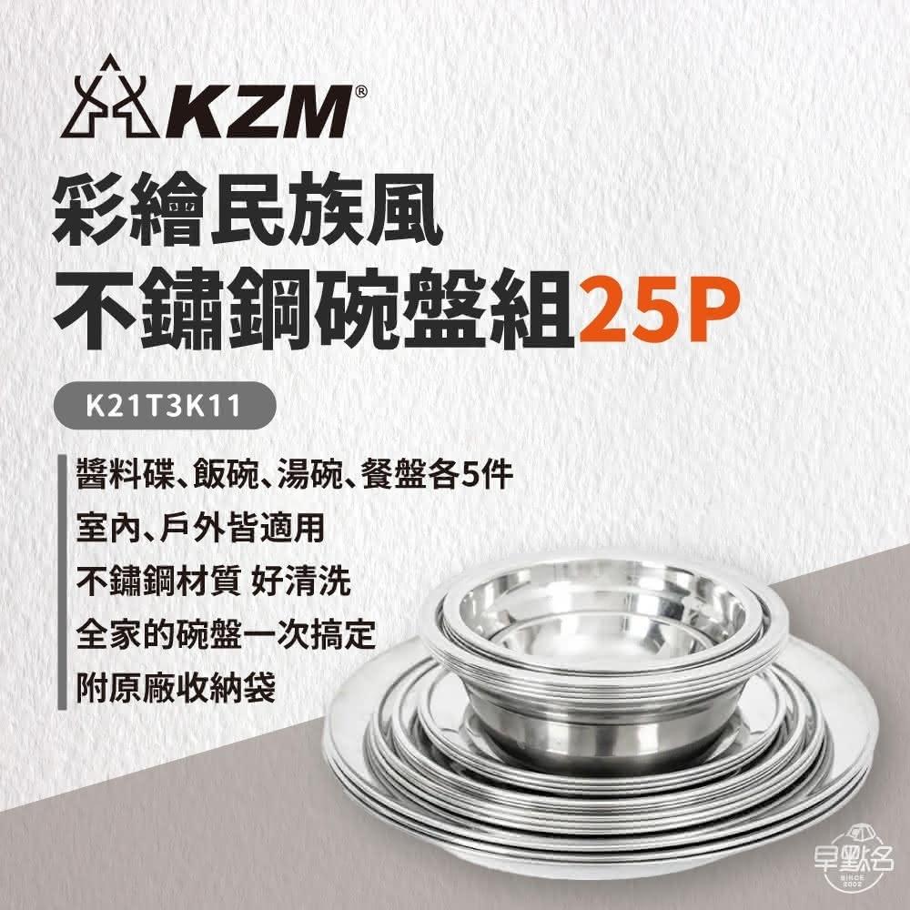 KZM彩繪民族風不鏽鋼碗盤組25P K21T3K11 露營餐具 餐具組 餐盤組 碗盤組 可疊放