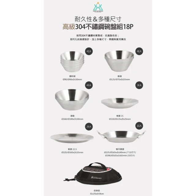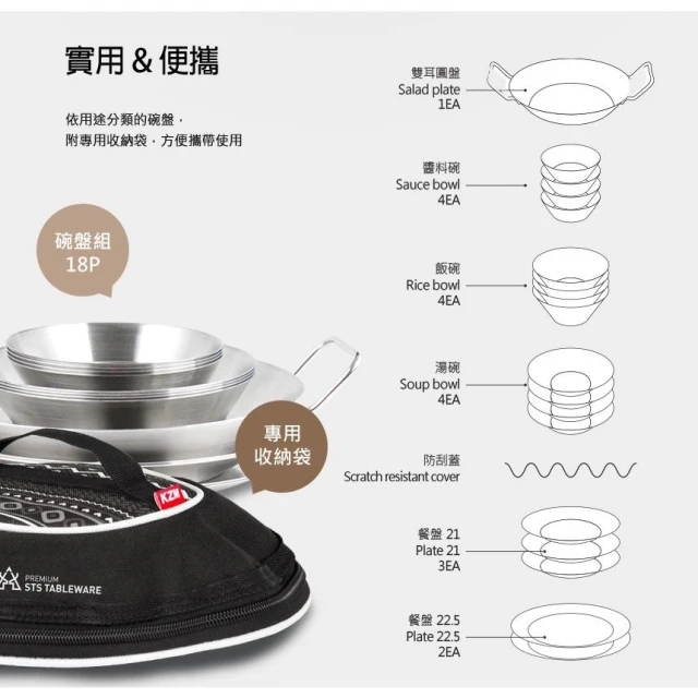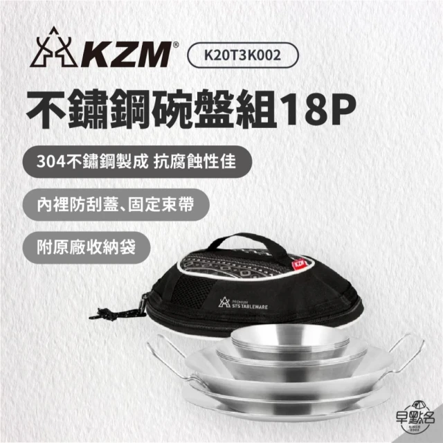 KZM304不鏽鋼碗盤組18P K20T3K002 露營餐盤 露營盤組 餐具組 餐盤組 可堆疊