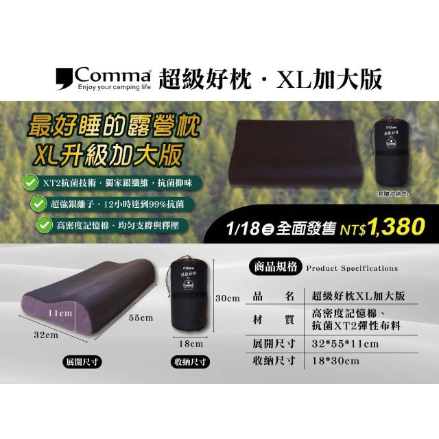 Comma 逗點Pillow 超級好枕 / XL 非充氣枕頭 高密度記憶泡棉枕 可捲收 附收納袋