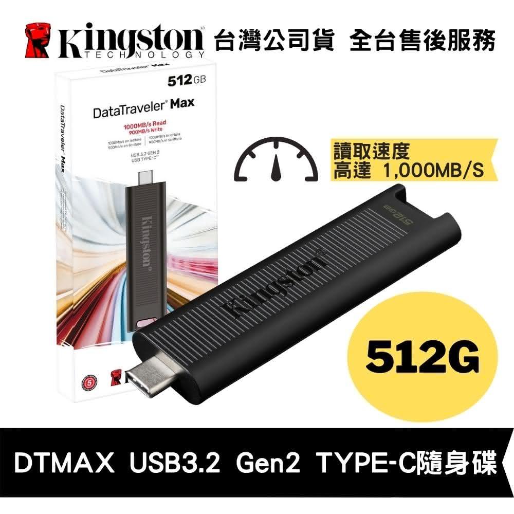 Kingston 金士頓512GB DataTraveler Max USB Type-C 高速隨身碟 保固公司貨USB 3.2 Gen 2 讀取速度 1000MB/s