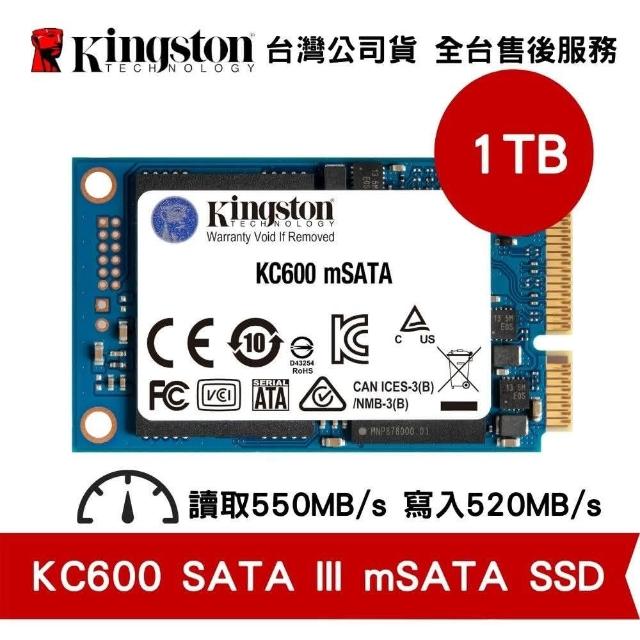 Kingston 金士頓KC600 1TB mSATA SSD 固態硬碟 3D TLC NAND 讀取速度高達 550MB/s 升級筆電首選