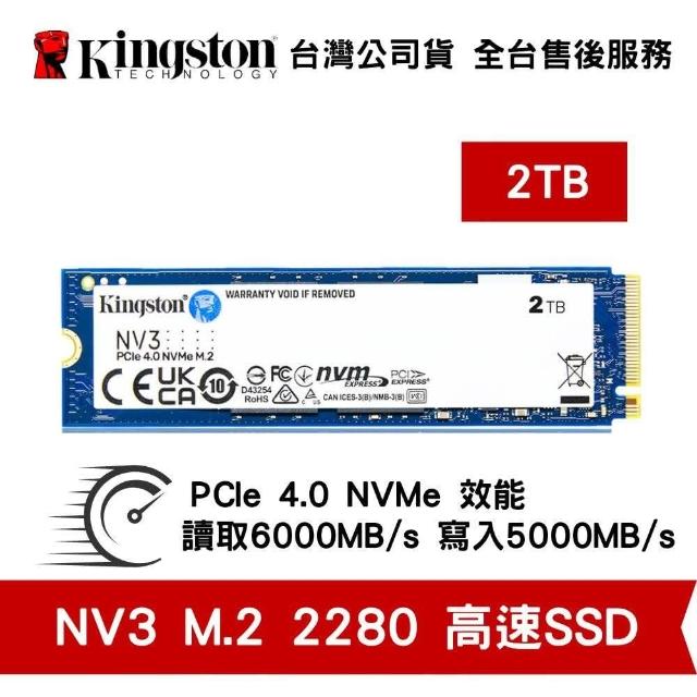 Kingston 金士頓NV3 2TB NVMe PCIe4.0 M.2 SSD 高效能固態硬碟 讀取速度高達 6000MB/s