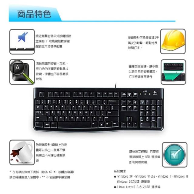 Logitech 羅技Logitech 羅技 K120 有線鍵盤 即插即用