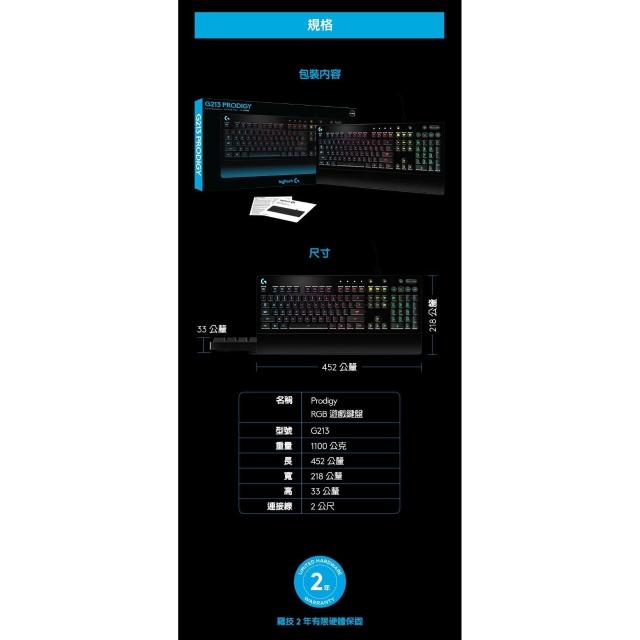 Logitech 羅技Logitech G 羅技 G213 PRODIGY RGB 電競鍵盤