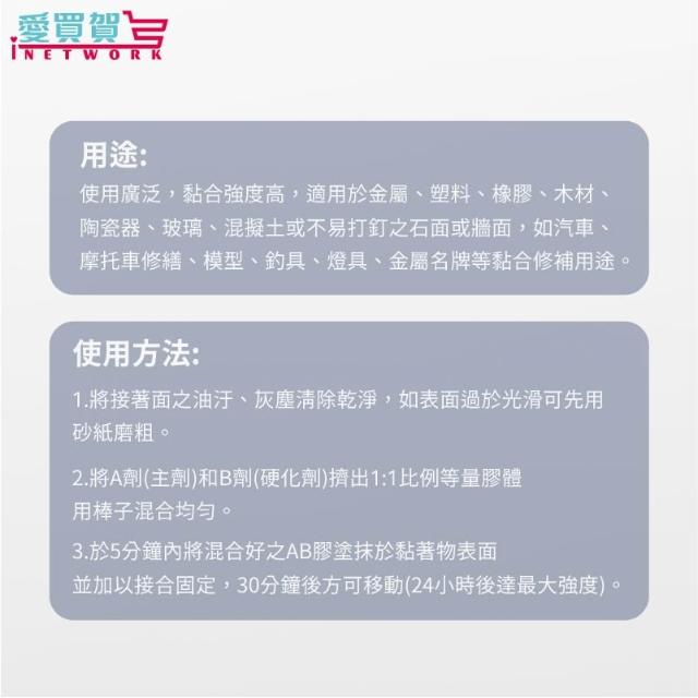 - 雙劑型配方,高強度黏著不易脫落