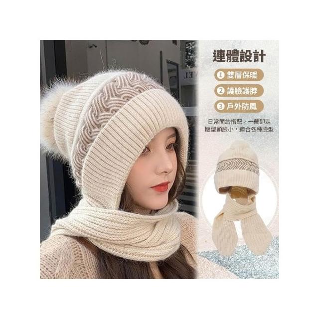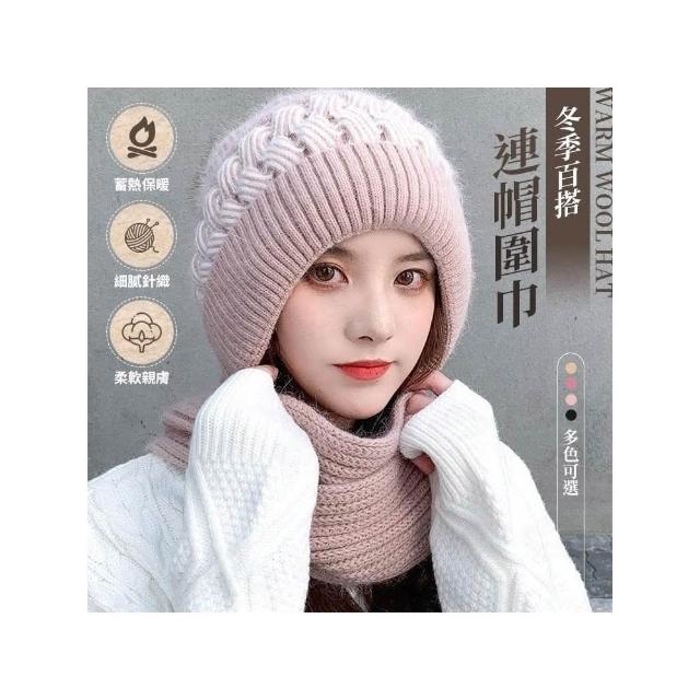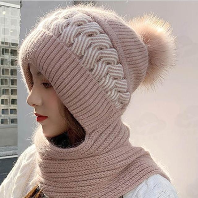 一體式連帽圍巾 圍巾帽 帽子圍巾 毛帽 保暖帽 冬天帽 針織圍巾 毛球帽 帽子圍巾一體 IB226