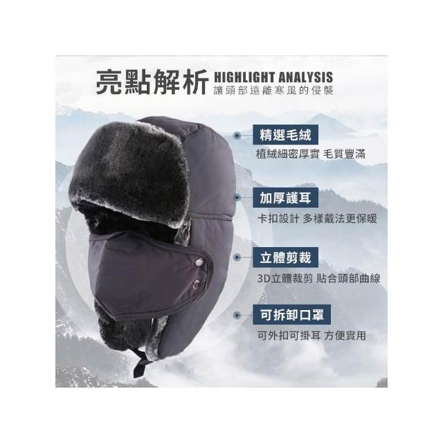 可拆式加絨護耳雷鋒 帽面罩帽 防寒帽 保暖帽 防風帽 護耳帽 飛行帽 口罩帽 雪地帽 IB214