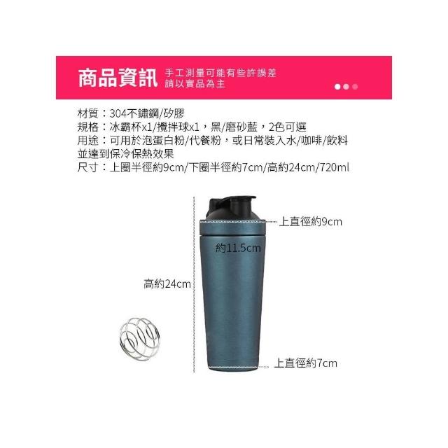 冰霸乳清搖搖杯 720ml 不鏽鋼保溫杯 蛋白粉杯 搖搖杯 攪拌杯 運動水壺 冰壩杯 HC001
