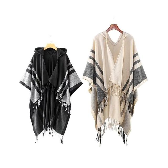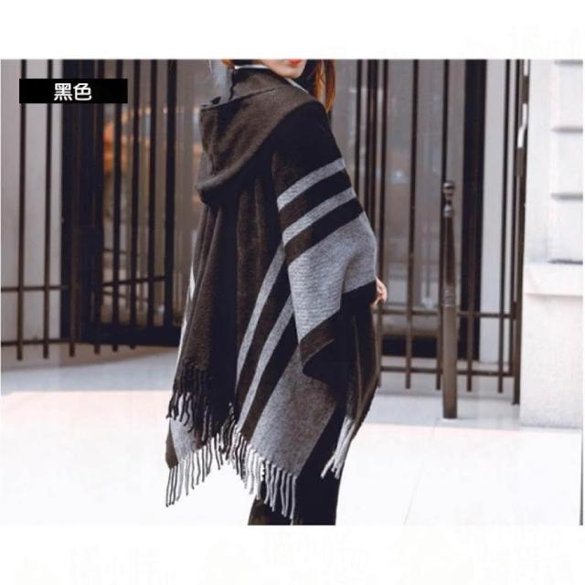 仿羊絨連帽披肩斗篷外套 斗篷外套 披肩斗篷 披風斗篷 連帽斗篷 保暖披肩 針織披肩 IB101