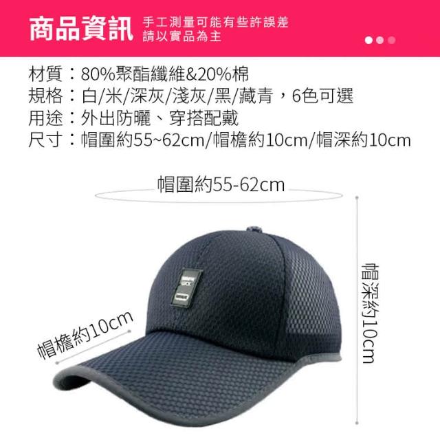 透氣涼爽網眼棒球帽 遮陽帽 防曬帽 鴨舌帽 釣魚帽 透氣帽 排汗帽 太陽帽 帽子男 IB256
