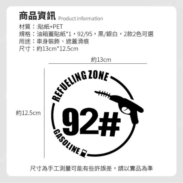 95.92油箱蓋貼紙 13cm 汽車貼紙 加油貼紙 車用貼紙 油箱貼 創意車貼 95貼紙 CW0316