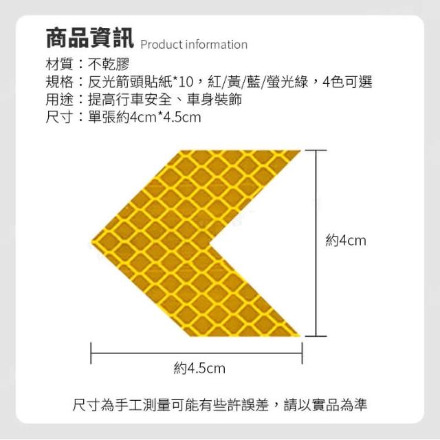 箭頭警示反光車貼 10入 反光貼紙 車用反光貼 警示貼紙 反光片 汽車貼紙 夜間反光 CW0351
