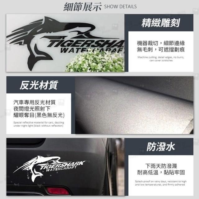 鯊魚汽車貼紙 33cm 車用貼紙 車身貼紙 防水車貼 反光車貼 個性車貼 潮流車貼 鯊魚貼紙CW0287