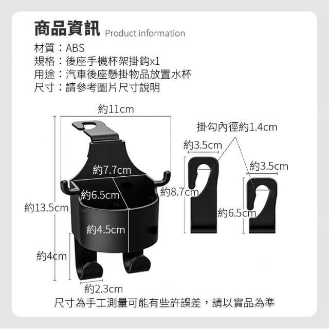 後座手機杯架掛鈎 汽車掛鉤 後座手機架 車用杯架 車用掛鉤 車用飲料架 置物杯架 汽車百貨 CX0432