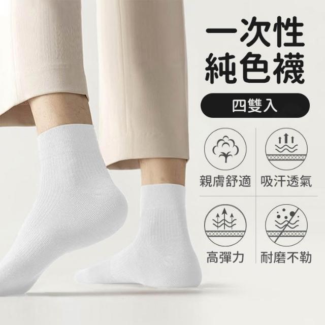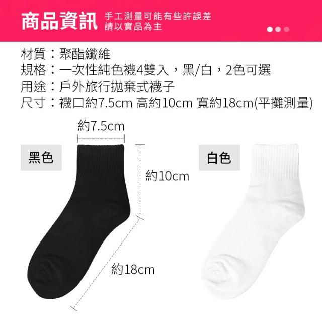 JOYTOUR 佳途一次性純色襪 蕉圖 4入 免洗襪 棉襪 一次性襪子 中筒襪 襪子女 運動襪 旅行襪子 JA242