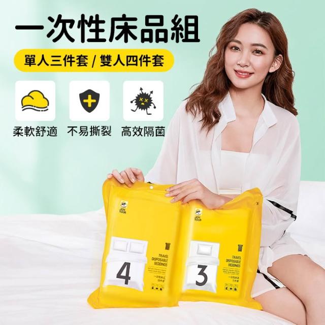Joytour一次性床品四件組 蕉圖 床包 拋棄式床單 拋棄式床巾 旅行床單 被套 枕頭套 雙人床單 JA243