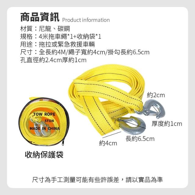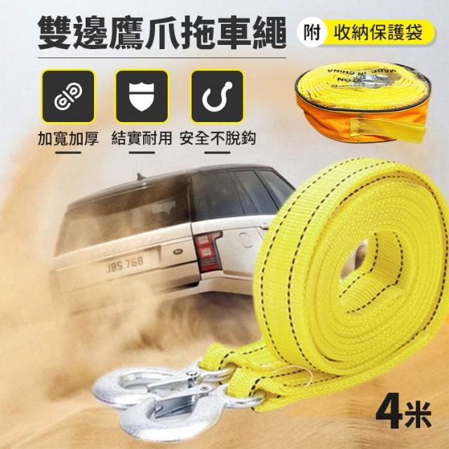 雙邊鷹爪汽車拖車繩 4米 拖車勾 拉車繩 拖車鉤 車繩 救援繩 救車繩 拖車線 汽車牽引繩 CN0481