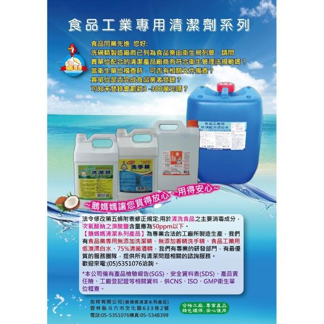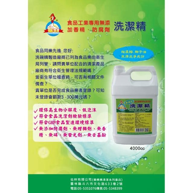 MotherGoose 鵝媽媽食品業專用PRO無添加洗潔精【4000cc】無添加化學香精 生鮮處理廠 餐飲、團膳、餐廳/偏遠地區請先私訊詢問