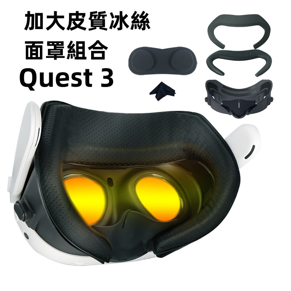 Meta QuestMeta Quest 3 加寬 冰絲皮質面罩 冰絲面罩 可高度伸縮支架 遮光設計 可戴眼鏡 透風設計(VR冰絲皮質面罩)
