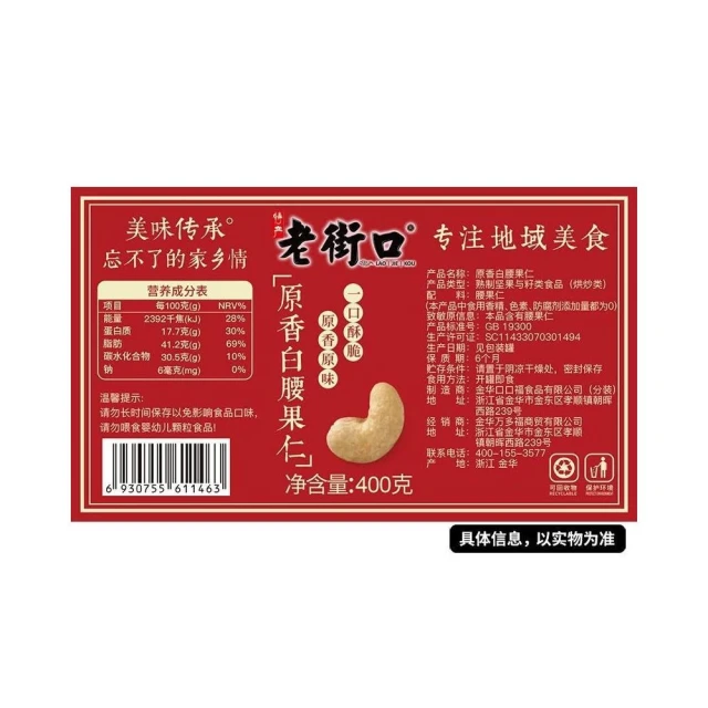 滿兜兜零食屋 原香白腰果仁 400g/罐