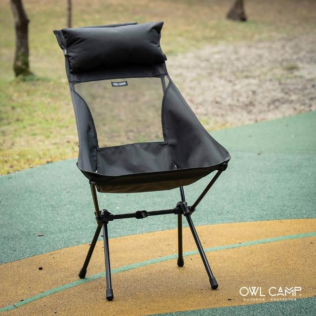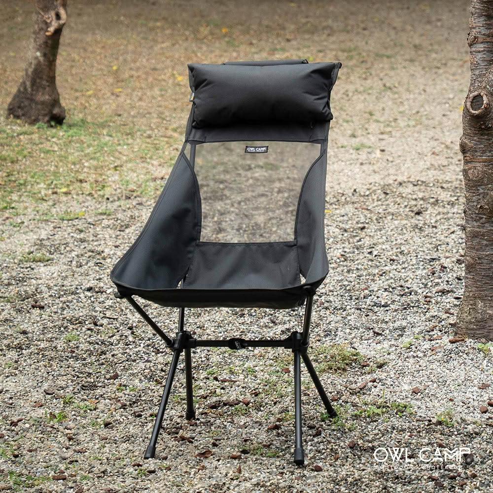 OWL CAMP輕量拼布高背椅 黑色 耐重140KG 折疊椅 露營椅 ABC Camping)