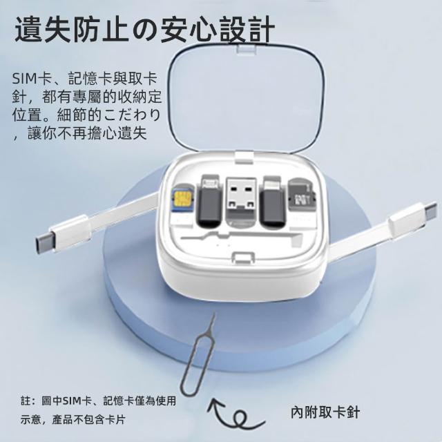 LC六合一 多功能伸縮充電線收納盒(安卓/蘋果iPhone數據傳輸線 USB轉接頭 SIM卡針 數據線收納盒)