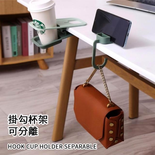 桌邊水杯置物架 夾式杯架 夾子杯架 桌子杯架 桌面杯架 辦公桌飲料水杯杯子置物架 多功能桌邊杯架 可放手機充電麻將桌必備