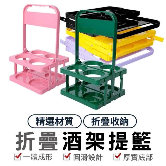 摺疊酒架提籃4瓶裝 飲料提籃 啤酒提籃 酒瓶架 手提籃 收納籃 啤酒籃 啤酒手提架 提酒架 飲料杯架 便攜式 聚會 野餐