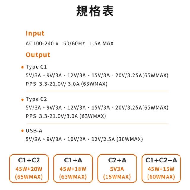 GUXON古尚 65W 氮化鎵GaN充電頭 3孔(2TYPE-C、1USB-A) 電源供應器 石墨烯黃銅散熱 充電器