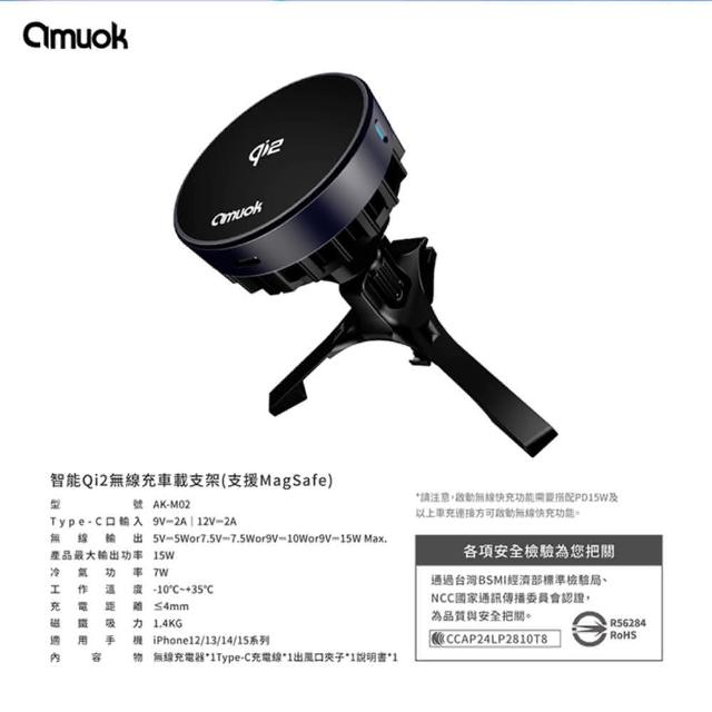 amuok Qi2超能磁吸無線充車載支架 磁吸充電 車用手機支架 出風口支架 車載支架 無線充電 磁吸支架 支援快充