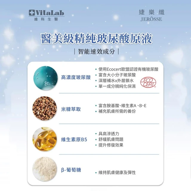 JEROSSE婕樂纖 VitaLab 維科 玻尿酸原液 2瓶入(優惠價 醫美級保濕修復 100%原液 快速出貨)